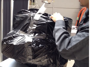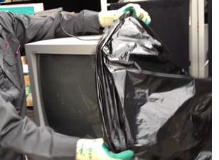 2.ゴミ袋でテレビを包みます。